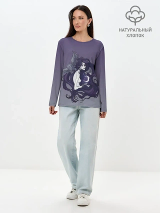 Лонгслив женский. Хлопок / ведьма сова луна
