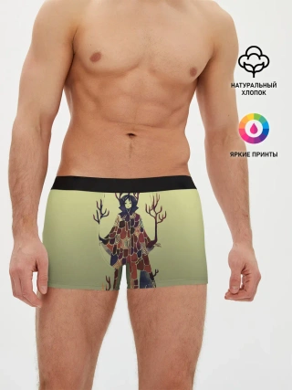 Мужские трусы боксеры / лесной волшебник акварель