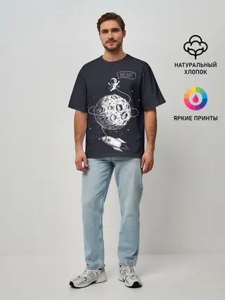 Мужская футболка оверсайз / Hello | Космонавт