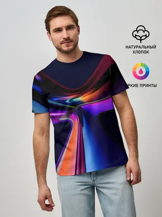 Мужская футболка оверсайз / Красочные светящиеся линии