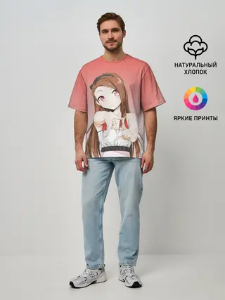 Мужская футболка оверсайз / девушка ищет кадр измеряет