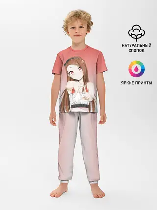 Детская пижама с шортами / девушка ищет кадр измеряет