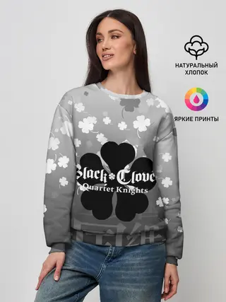 Женский свитшот / Черный логотип Клевера на сером градиенте