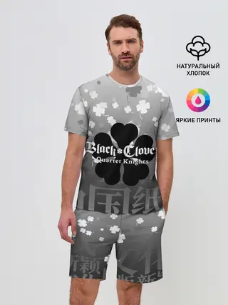Мужской костюм с шортами / Черный логотип Клевера на сером градиенте