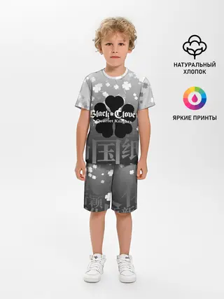 Детская пижама с шортами / Черный логотип Клевера на сером градиенте