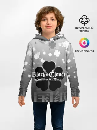 Детское худи / Черный логотип Клевера на сером градиенте