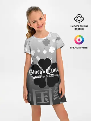 Детское платье / Черный логотип Клевера на сером градиенте