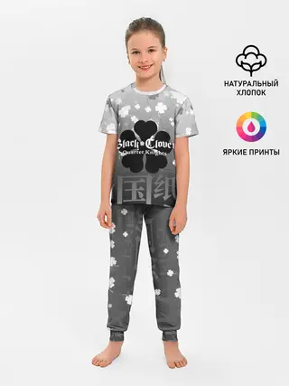 Детская пижама с брюками / Черный логотип Клевера на сером градиенте