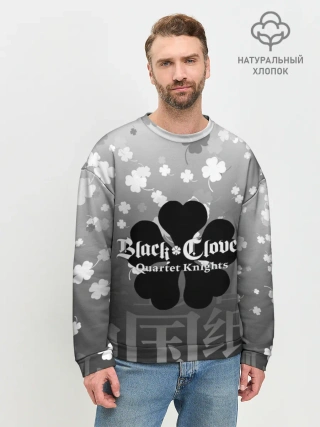 Мужской свитшот базовый / Черный логотип Клевера на сером градиенте
