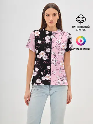 Женская футболка оверсайз / САКУРА | SAKURA | ВИШНЯ