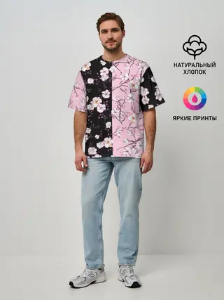 Мужская футболка оверсайз / САКУРА | SAKURA | ВИШНЯ