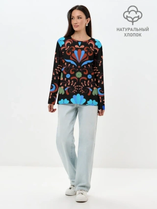 Лонгслив женский. Хлопок / РОСПИСЬ ЦВЕТАМИ