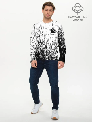 Мужской свитшот базовый / Черный клевер на едко белом фоне