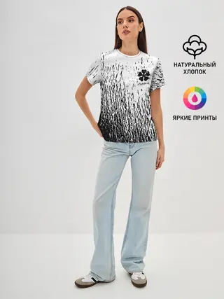 Женская футболка оверсайз / Черный клевер на едко белом фоне