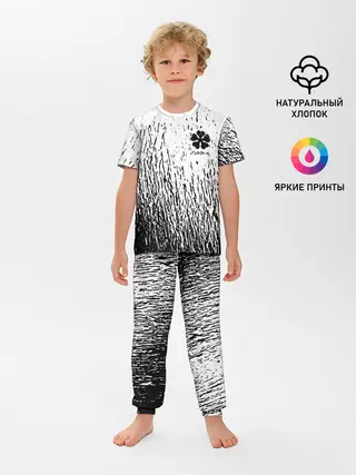 Детская пижама с брюками / Черный клевер на едко белом фоне