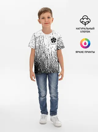 Детская базовая футболка / Черный клевер на едко белом фоне