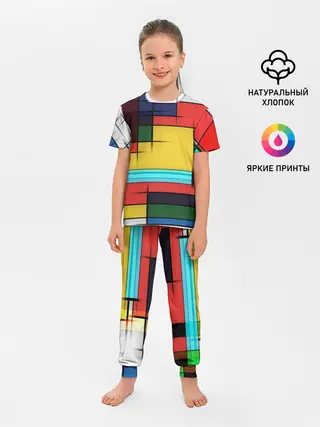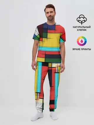 Мужская пижама с брюками / абстрактные фигуры цвета
