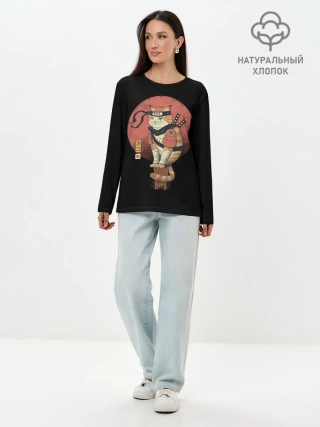 Лонгслив женский. Хлопок / Кот Ниндзя