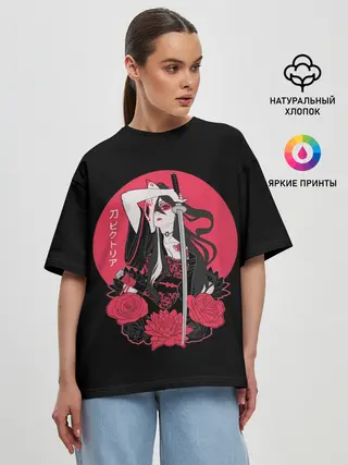 Женская футболка оверсайз / Девушка С Катаной