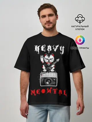 Мужская футболка оверсайз / КОТ ХЕВИ МЕТАЛ