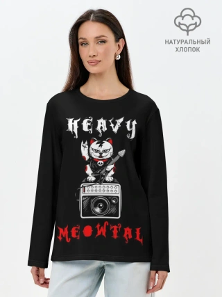 Лонгслив женский. Хлопок / КОТ ХЕВИ МЕТАЛ