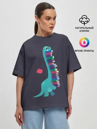 Женская футболка оверсайз / Book Dinosaur