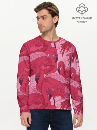 Мужской лонгслив базовый / розовые фламинго
