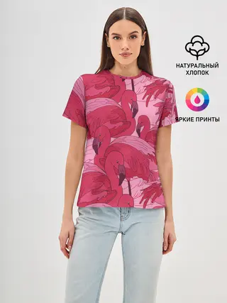 Женская базовая футболка / розовые фламинго