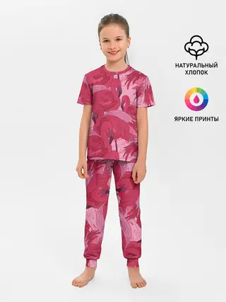 Детская пижама с брюками / розовые фламинго