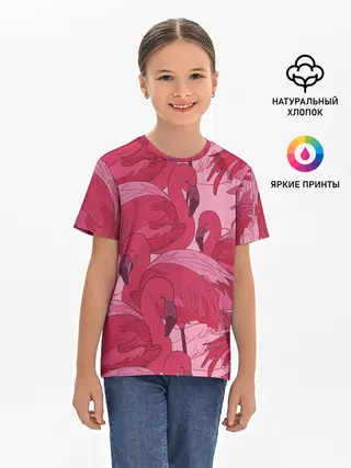 Детская базовая футболка / розовые фламинго