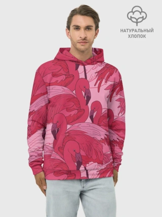 Худи мужской база хлопок / розовые фламинго