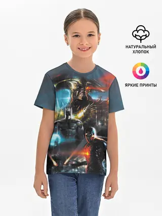 Детская базовая футболка / Batman, Cyborg VS Steppenwolf