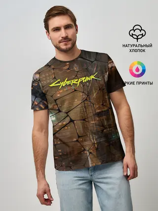 Мужская базовая футболка / Киберпанк - Город в паутинке