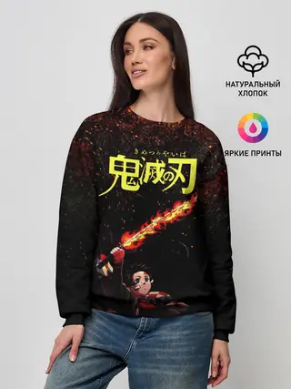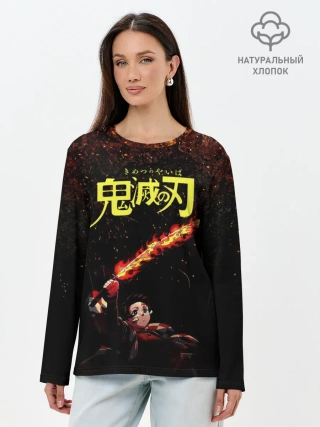 Лонгслив женский. Хлопок / Танджиро Камадо в огне