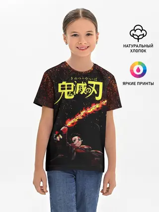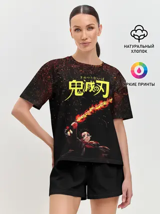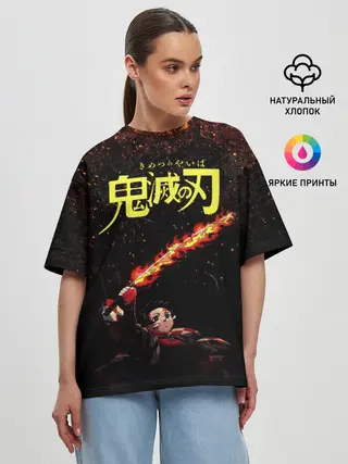 Женская футболка оверсайз / Танджиро Камадо в огне