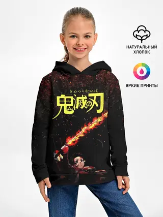 Худи мужской база хлопок / Танджиро Камадо в огне