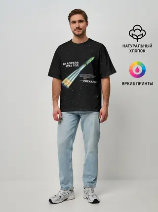 Мужская футболка оверсайз / Восткок-1 | Поехали!