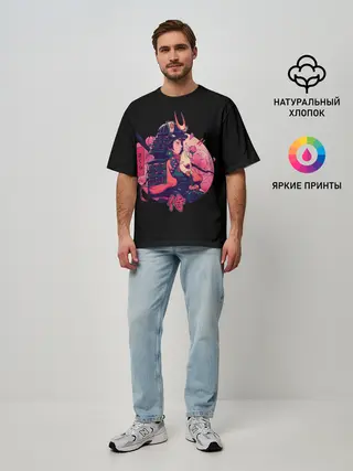 Мужская футболка оверсайз / Вишневый Самурай