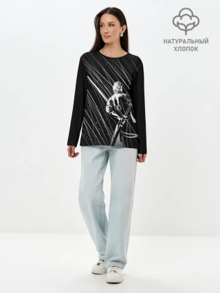 Лонгслив женский. Хлопок / Вирджил под дождём