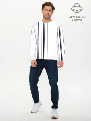 Мужской лонгслив базовый / Белые и синие полосы | Stripes