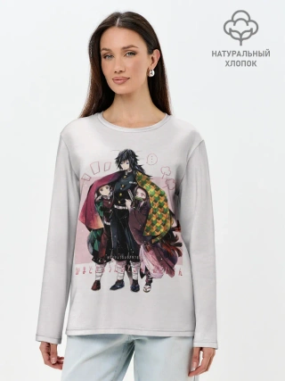 Лонгслив женский. Хлопок / Гию оберегает Танджиро и Незуко
