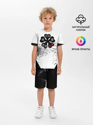 Детская пижама с шортами / Чёрный клевер с иероглифами