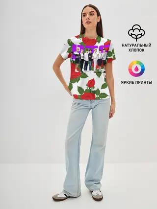 Женская базовая футболка / BTS Roses | White