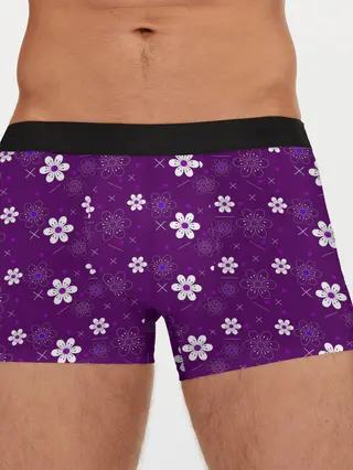 Мужские трусы боксеры / узор цветы на фиолетовом фоне