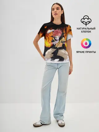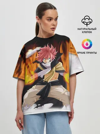 Женская футболка оверсайз / Fairy Tail воинственный Нацу