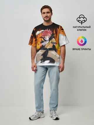 Мужская футболка оверсайз / Fairy Tail воинственный Нацу