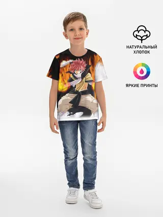 Детская базовая футболка / Fairy Tail воинственный Нацу