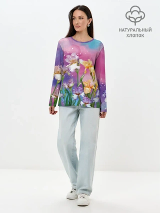 Лонгслив женский. Хлопок / Сказочные Ирисы