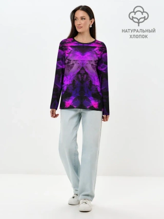 Лонгслив женский. Хлопок / абстракция,пришелиц,космос,100