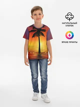 Детская базовая футболка / ТРОПИЧЕСКИЕ ПАЛЬМЫ.